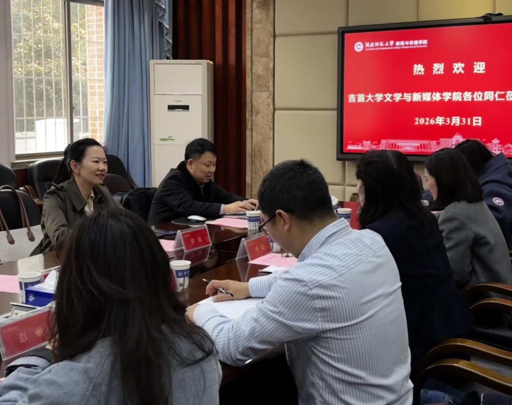 在湖南大学中国语言文学学院和湘潭大学文学与新闻学院,双方围绕本科人才培养方案、“拔尖创新”人才培养,国家通用语言文字推广基地建设的先进理念、 成功经验与特色做法等进行探讨,重点交流了在人工智能技术迅速发展的当下新文科的发展思路。