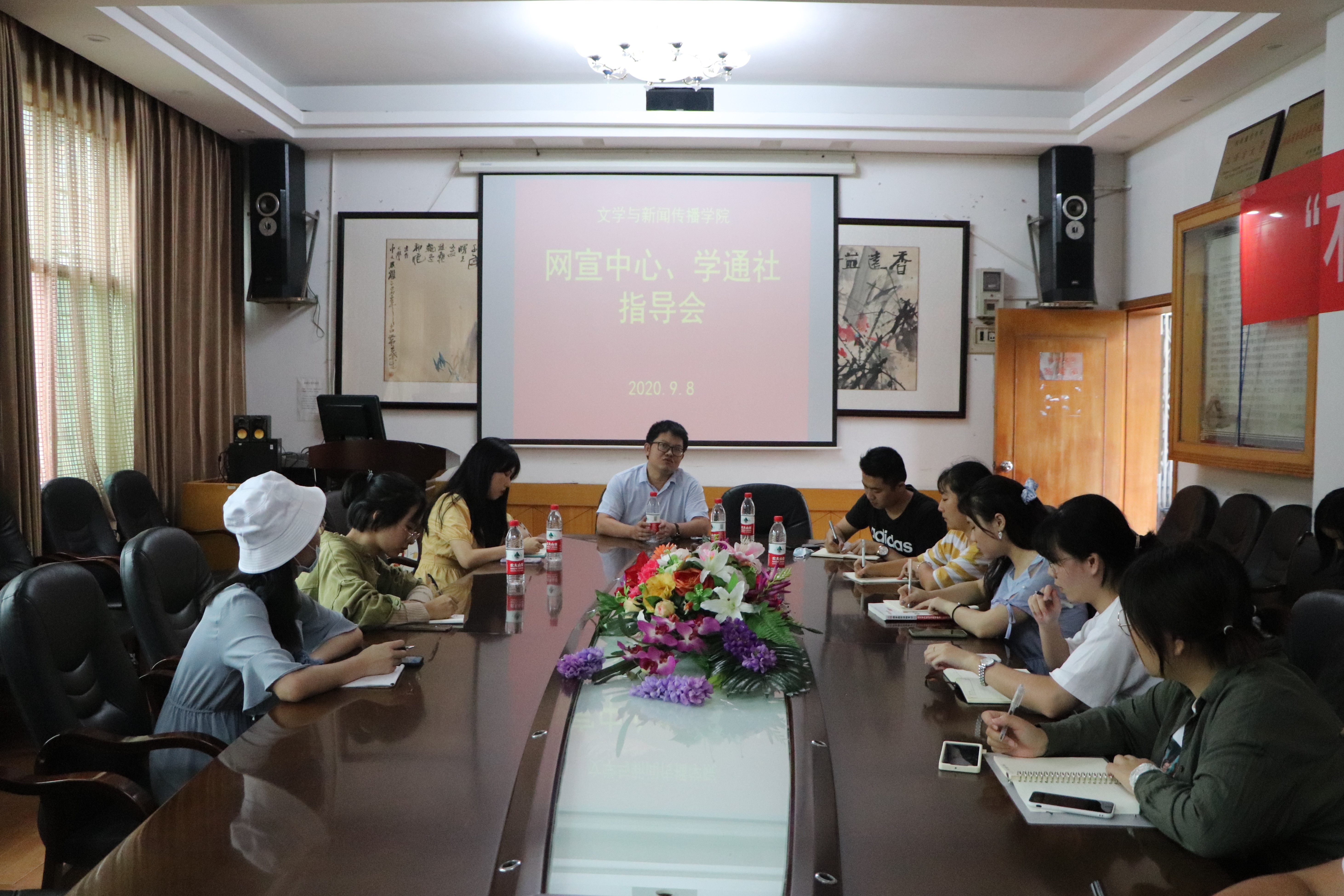 本网讯(通讯员 任金欣)9月8日下午,我院于砂子坳校区影视鉴赏室召开学通社与网宣中心的指导会议。院党委副书记段武城、辅导员刘建新出席会议,为指导学通社与网宣中心工作,提出了改革发展意见。