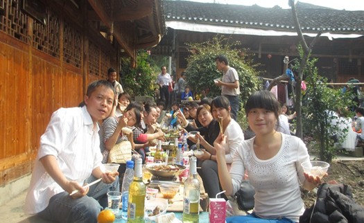 沙湾村村民为实习队设的长条宴