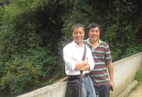 带队老师何小平与保靖民族中学教务处主任刘劲松在沙湾村留影